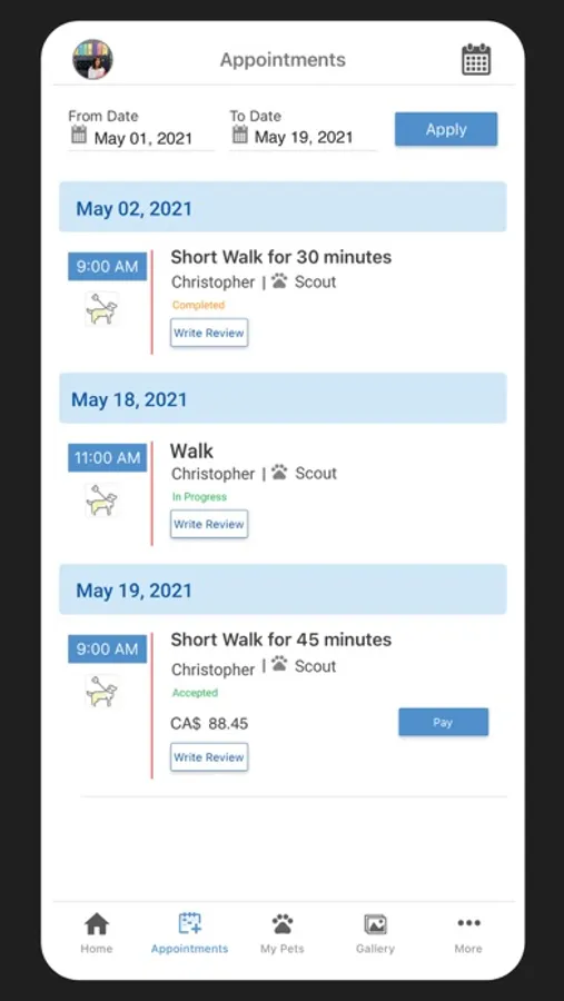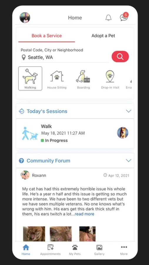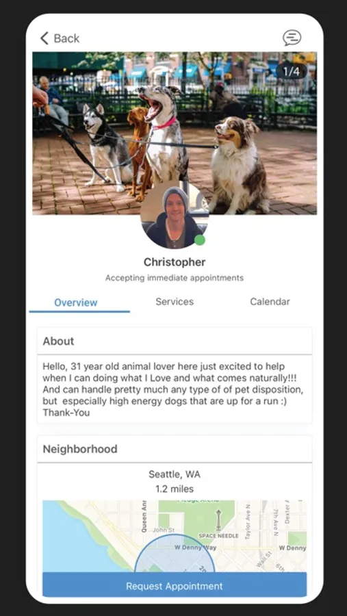 * Search pet care services: walkers, sitters, boarding, drop-in visits, and errand runners.