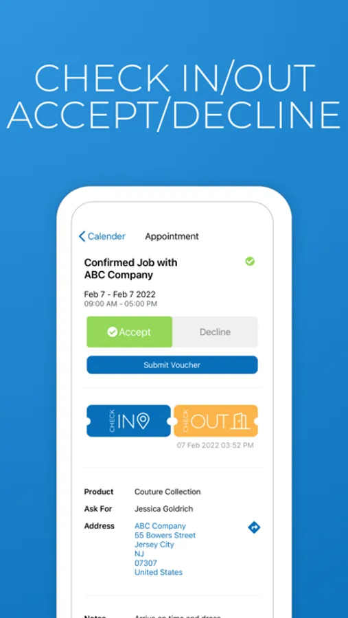 - Check-in and check-out of your appointments with one click. Allow your agent to know when and where you are when you arrived and left your appointment.