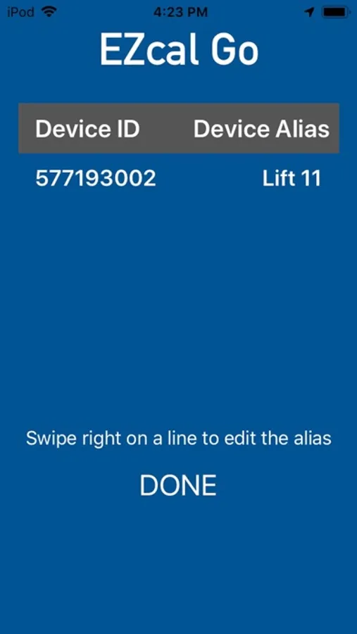EZcal GO app when used with EZcal GO dongle (p/n 21 500 250), will be an alternative to the EZcal wired Handheld Device as well as certain features of the EZcal Pro device: