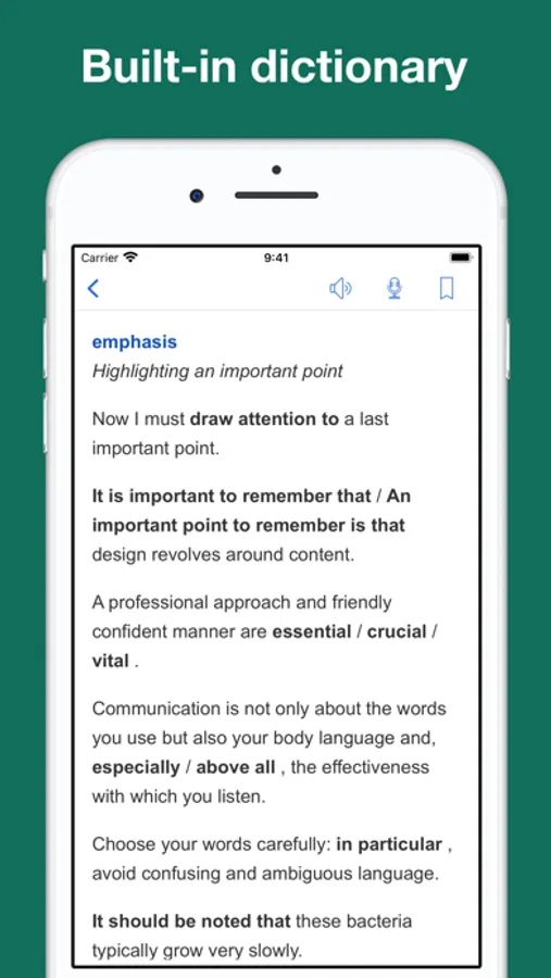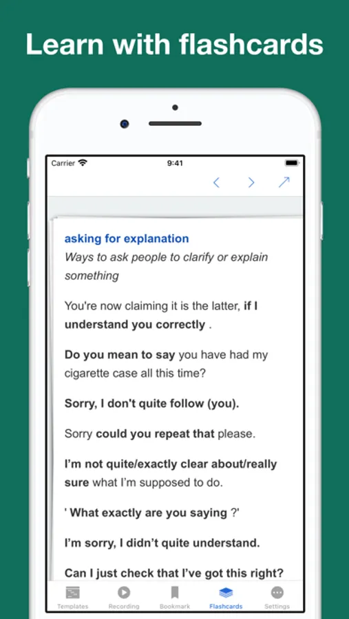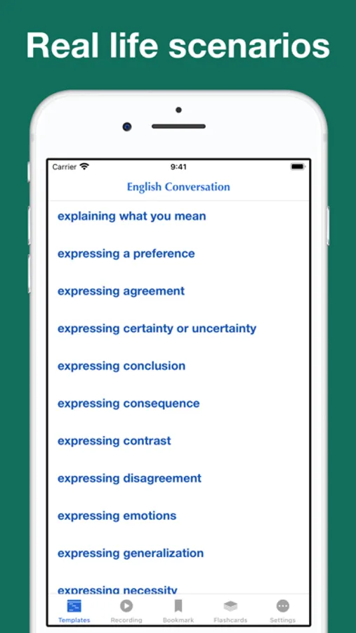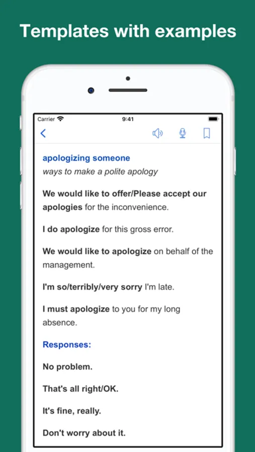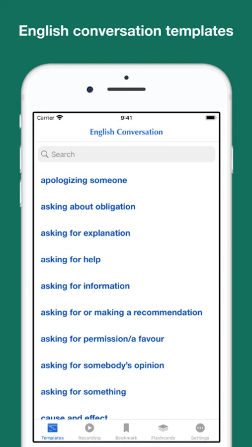 This app is designed to help you learn English Conversation Templates. They are common vocabulary, phrases and sentences native speakers use in real life. Using templates in conversations will help you to speak more naturally and fluently.