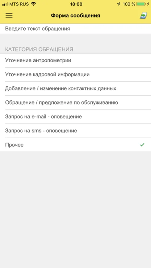 Также приложение обеспечивает обратную связь сотрудников организации с операторами АСТБ облачного сервера в разрезе категорий: