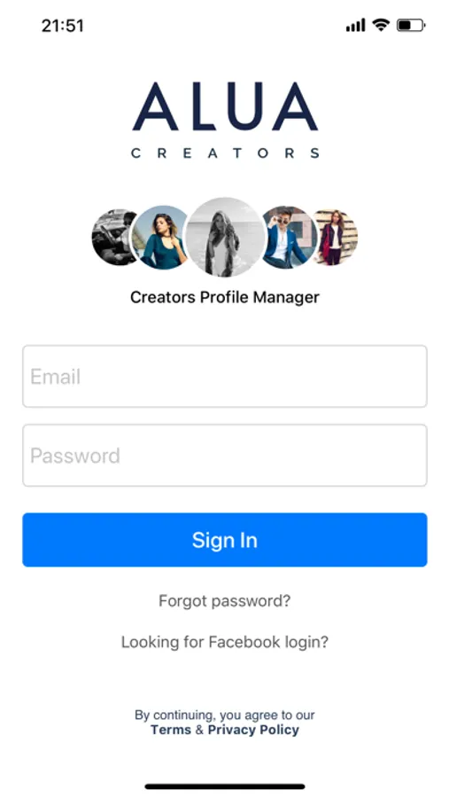 Alua Creators Profile Manager app is for Alua featured members to manage their profile including uploading photo and video.