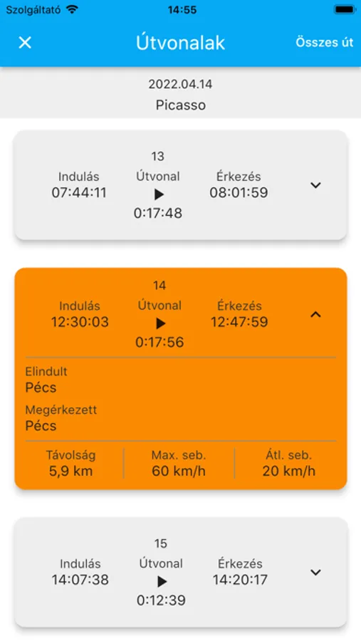 - elemezhetők az adott időszak alatt megtett útvonalakhoz tartozó információk