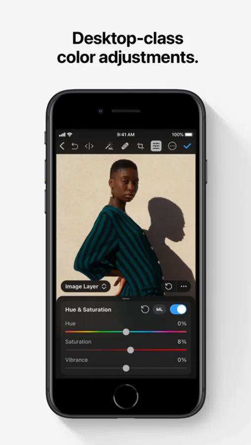 • Photomator is built from the ground up for iPhone and iPad with a native design that blends seamlessly with the sleek and modern look of iOS and iPadOS 16
