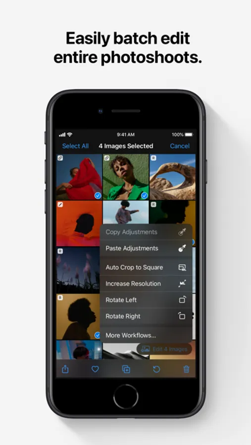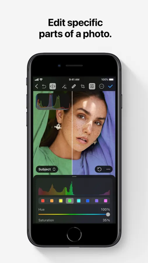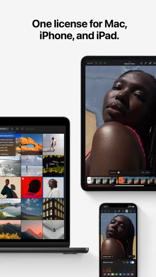 • Automatically enhance shots using a machine learning algorithm trained on 20 million pro photos, or fine-tune individual adjustments, like White Balance, Selective Color, or Color Balance with a single tap