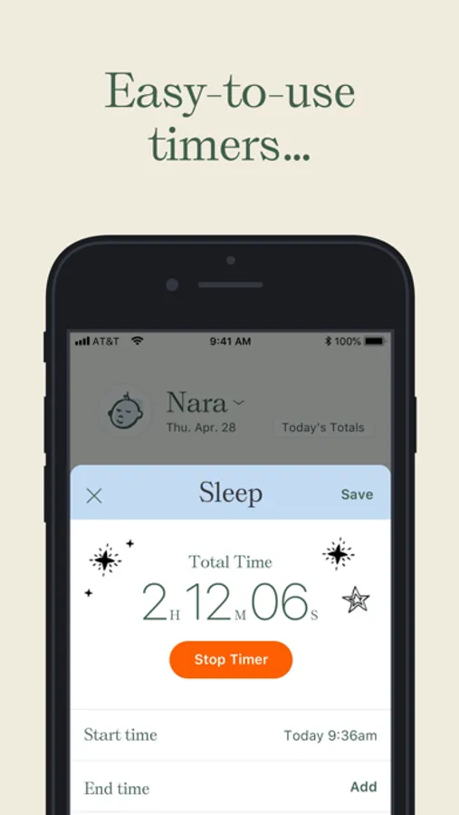 Babies crave routine; as a parent, you do everything you can to provide a comforting and predictable schedule for your little one. Nara Baby is here to support you along the way. That’s why we’ve created an app that is intuitive, fuss-free, and shareable across multiple devices—so you have more time to spend on the important stuff.