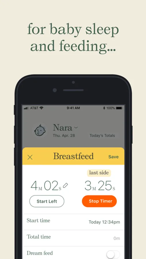 - Time breastfeeding sessions and your baby’s sleep with a simple tap