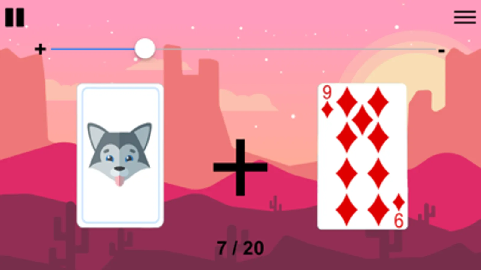 speelkaarten opgebouwd. Er zijn leuke dierenfiguurtjes en achtergronden gebruikt om het visueel aantrekkelijk te maken.