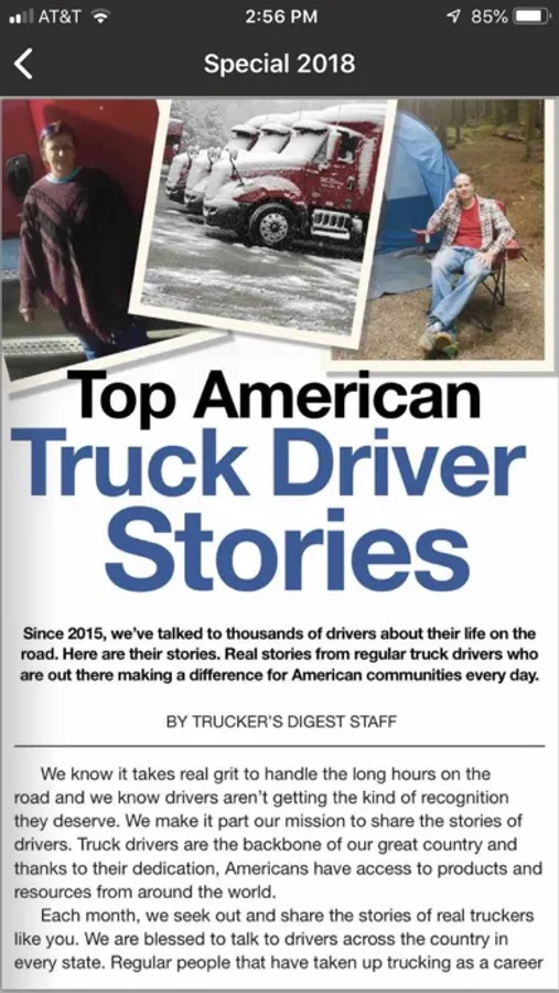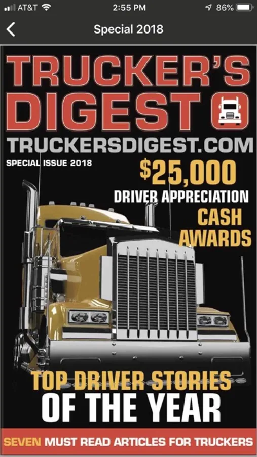 Trucker’s Digest is a free monthly publication dedicated to helping connect drivers all across America. We interview thousands of truckers, listen to their stories and challenges, then provide information and resources that relate specifically to life on the road. We also gather the latest and greatest information from the trucking industry to help drivers stay up-to-date on industry news. And to recognize drivers for their service, we give monthly driver appreciation cash awards to Company Drivers, Owner Operators, Student Drivers and Female Drivers. We also provide the latest hiring information and recruiter contacts. Companies all across America are looking for drivers just like you and it's never been easier to find a job with higher pay, better benefits and more home time.