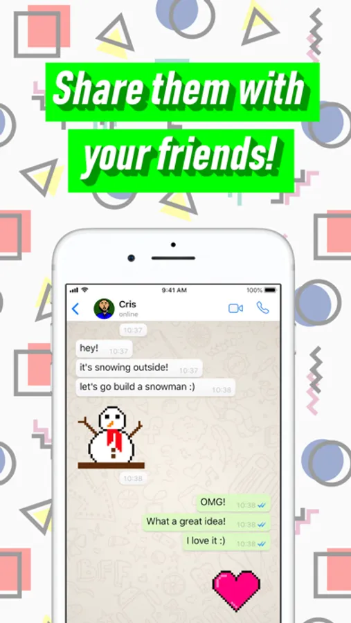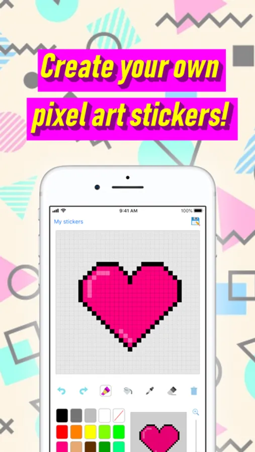 Create your own stickers in pixel art style, like it’s the 80's again! Wait…there wasn't WhatsApp or Messages stickers back in the 80's. Boom! An even more interesting experience then: A mashup of cultures. A triumph of art over time!!!
