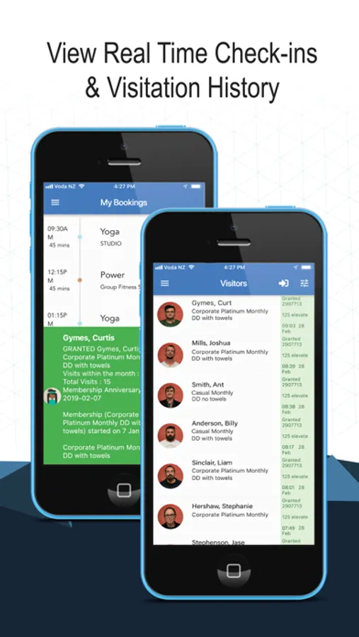 See who's working out and when. Visitation history & real time pop-ups notify you of check ins.
