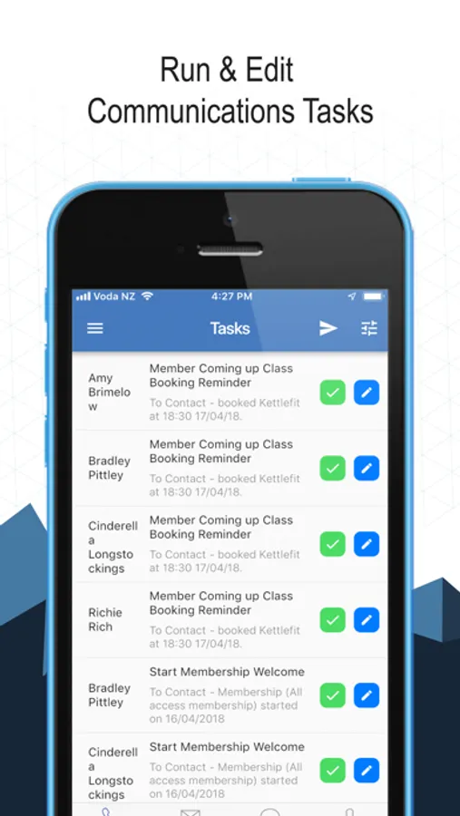 Access member details, check them in and send them SMS, Emails or make calls from your device.