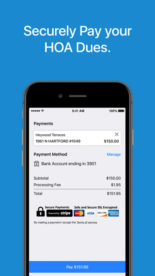 Securely pay your dues and view your account balance, report issues and more.