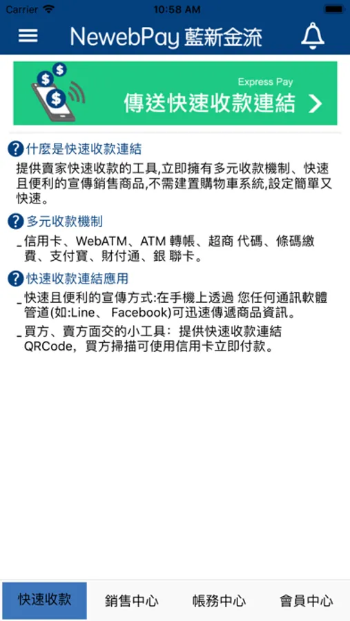 「藍新金流NewebPay」商店管理APP,提供藍新金流會員多樣便利功能:
