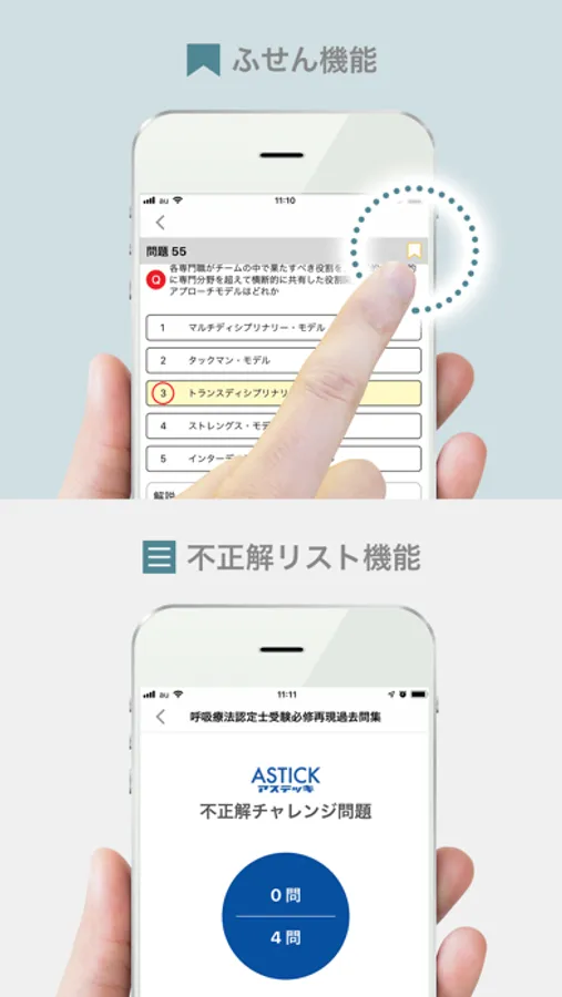 不正解だった問題は、不正解リストで正解するまで繰り返し勉強をすることができます。