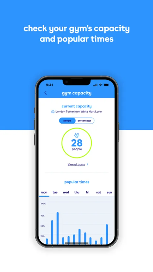 Check the real-time capacity of your gym using both the number of people and the percentage capacity to help you plan your visit.