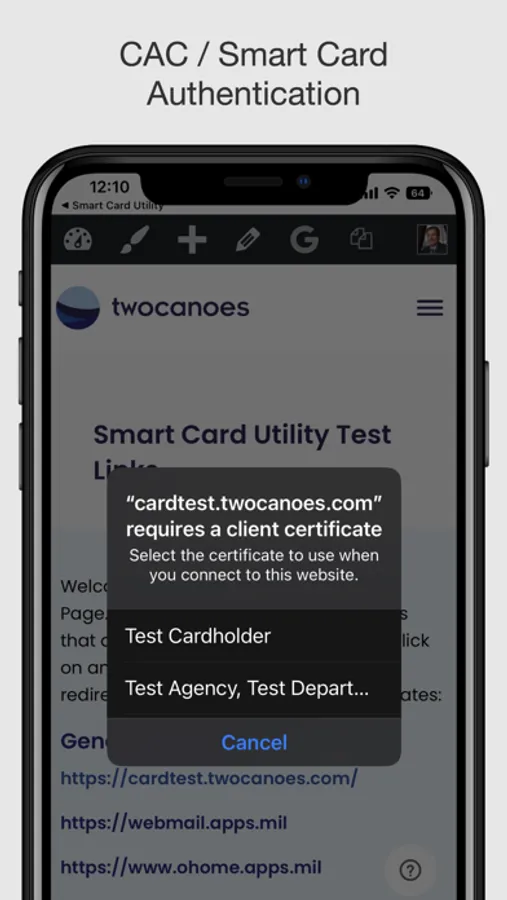 Smart Card Utility enables smart card authentication to Office 365, Webmail, Teams, and most other CAC protected websites via Safari. Just plug in your existing PIV-enabled smart card and log in. Smart Card Utility is used by members of Air Force, Navy, Marines, Army, Coast Guard, and other military/government employees to access CAC protected websites on their iPhone or iPad.