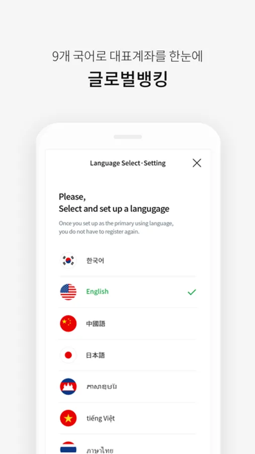 - NH스마트뱅킹 앱 하나로 9개 국어 뱅킹서비스 이용이 가능합니다.