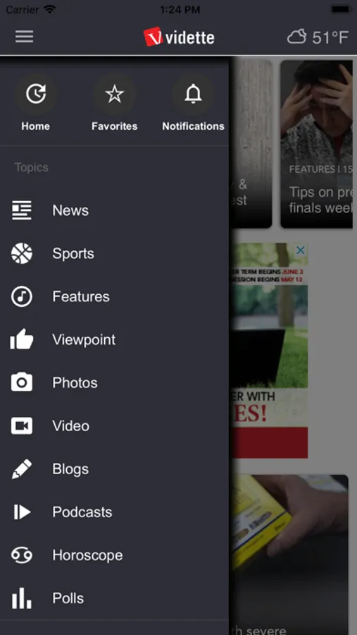 The Vidette is the official app for the student newspaper of Illinois State University in Normal, Illinois. It is a location-based mobile app platform that delivers late-breaking campus news, sports, weather, features, photos, videos, fun entertainment and valuable promotions from merchants in Normal and Bloomington, Illinois, area. The app features quick access to the local content of interest to the ISU community. Users can submit news, calendar items and classified ads directly to us. Stay connected with breaking ISU-related news, sports and weather by using timely push notifications. The app is free and requires no registration to use.