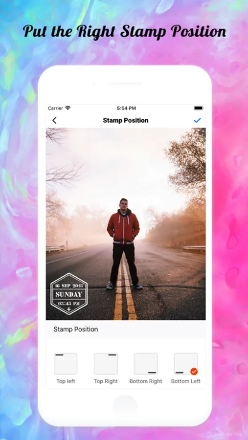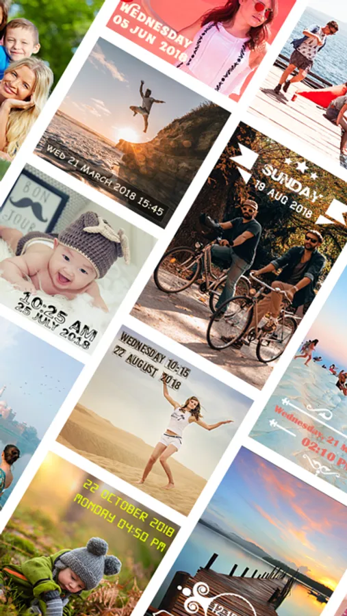 Make sure your customized date stamps standout in the picture! In this Moment Stamp App, get the collection of font color and makes your picture look more attractive. You can also create your own DateTime pics colors by combining others!