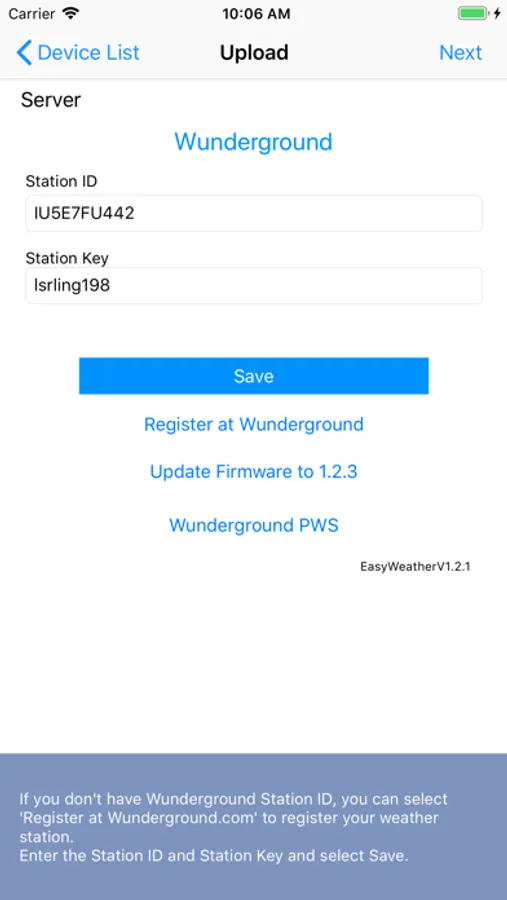Use this app to set up WMR580 networking, uploading, and viewing data.