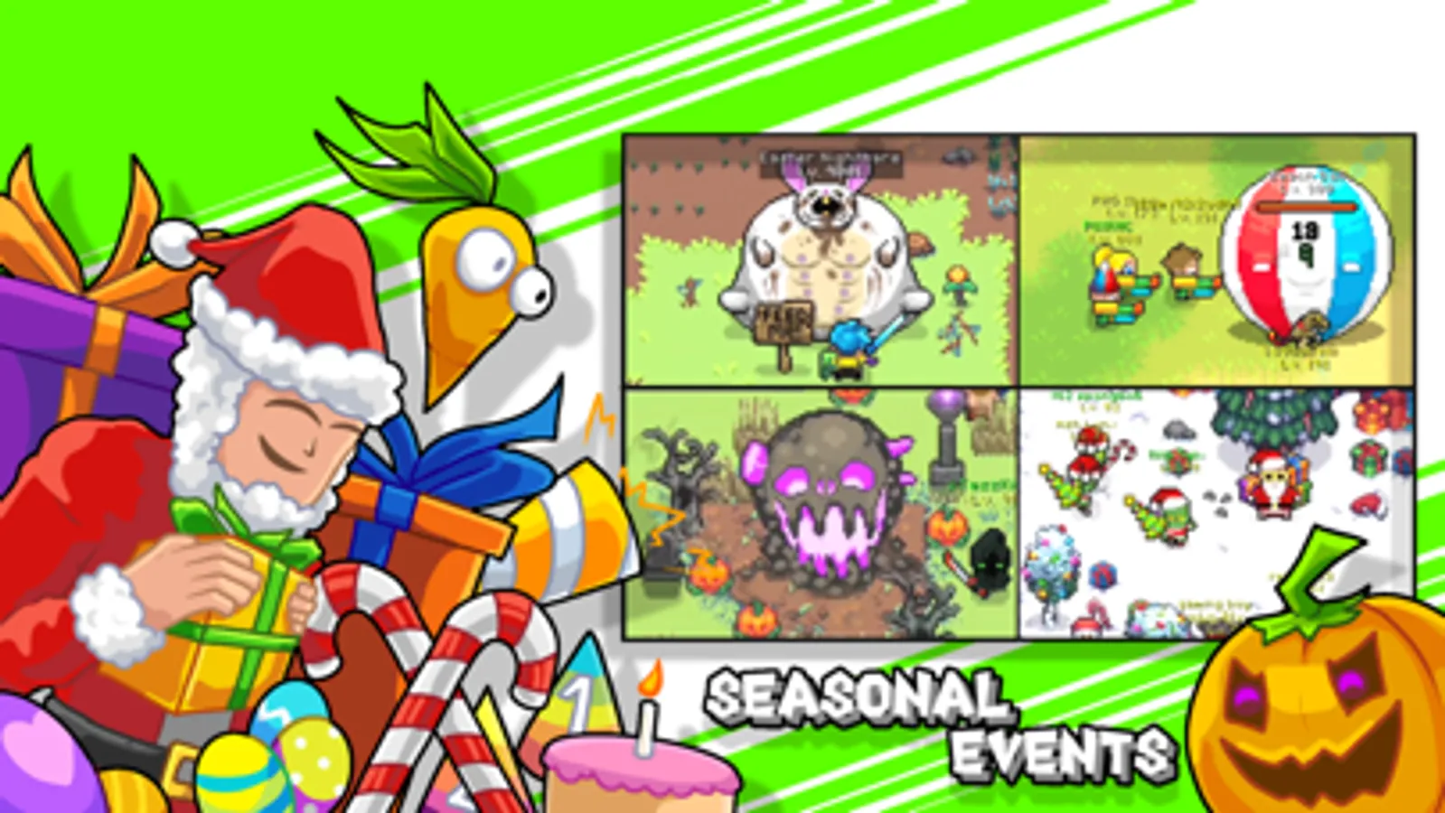 Fight creatures, from weak bats all the way to the strong imprisoned Ice Demon. Collect items, gather resources (such as by mining), or team up and obtain rare items from strong foes. Complete tasks for bonuses or simply hang out with people in the town square. The world is yours to discover!