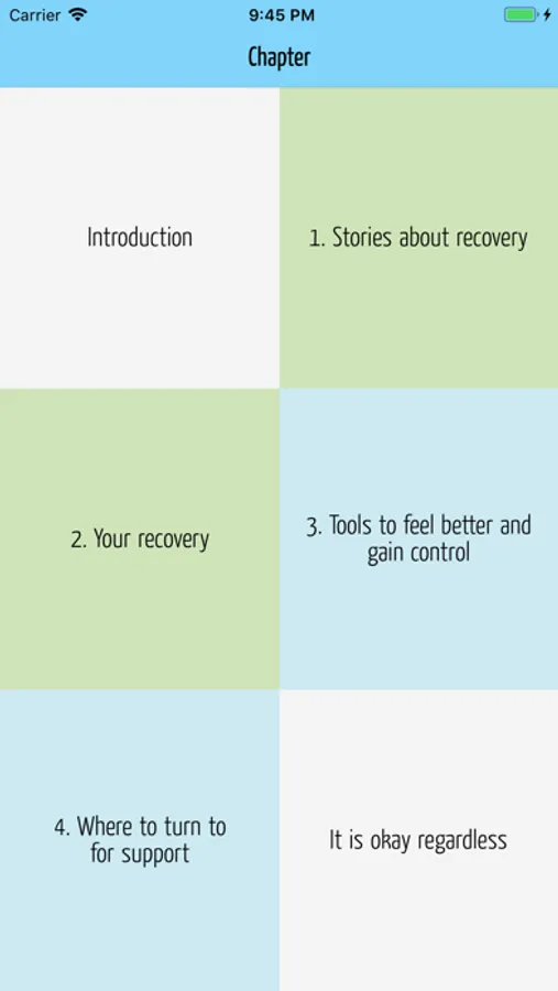 Recovery Guide is written to be supportive to your recovery. It’s divided into four sections and contains, among other things, stories about recovery, where to turn to for support, and examples of things that have been helpful for others. It also includes tools for self-reflection on what you can do when you’re not feeling well.