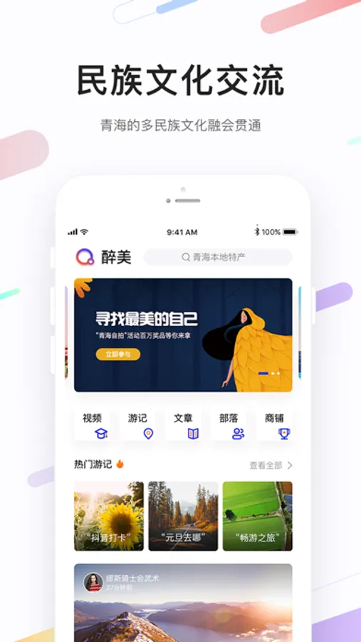 醉美青海希望打造“智慧青海,轻松旅行”的理念,包含视频栏目,音频文章,游记攻略,c2c电商,线路记录,社交动态,社群活动等丰富功能,利用互联网技术及智能算法最大化的满足本地需求。