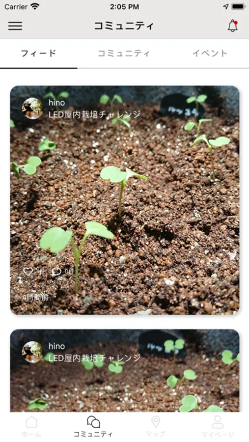 水やりコミュニティや、味噌好きコミュニティなど、自分の好みに合わせたコミュニティを探すことができたり、普段の何気ない質問などもコミュニティにすることが可能です。スポット:PLANTIOが運営する「grow FIELD」「grow HOME」の情報をお届けします。栽培中の野菜のカレンダー見ることで、いつどのようなアクティビティが行われるかがわかります。