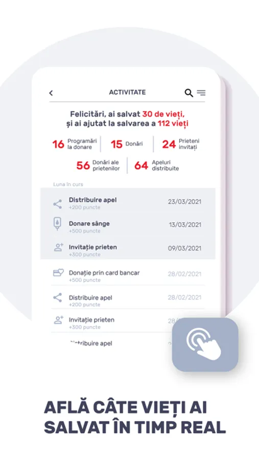 • Știi câte vieți ai salvat și poți vedea toată activitatea ta.