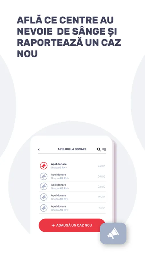 • Poți raporta un caz care are nevoie de sânge și notifici alți donatori să vină la donare.