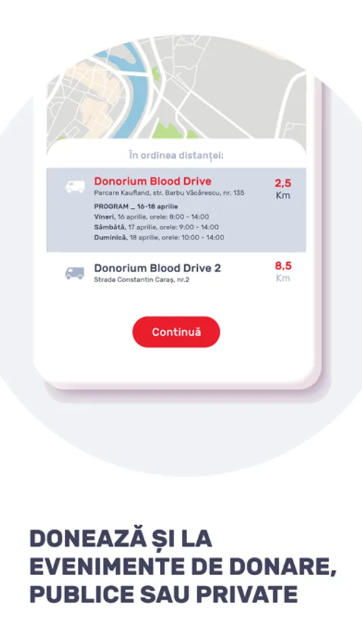 • Vezi ruta către centrul de transfuzie sau evenimentul de donare.