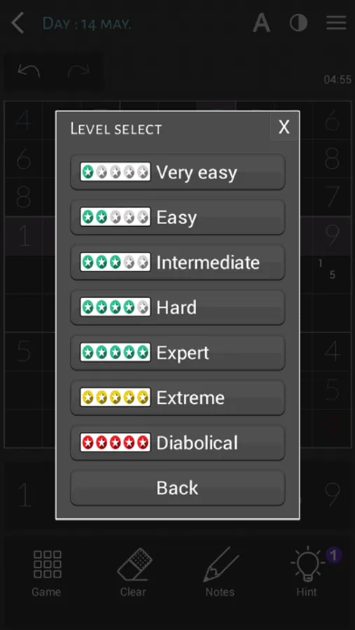 3 - Intermediate : You will be able to finish Intermediate level games using basic techniques: Hidden singles and Naked singles.