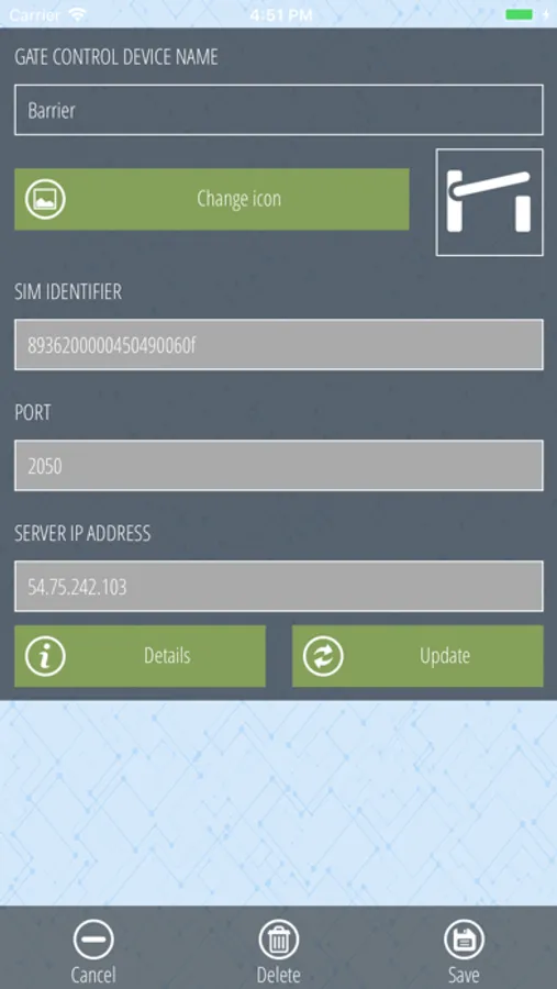 The application can be used to control the Musitel 630-632 devices produced by MUSITEL. The Musitel 630-632 is a GSM-based remote control for electric gates and barriers. The application connects to the mentioned device over the Internet, therefore it generates data traffic during use!