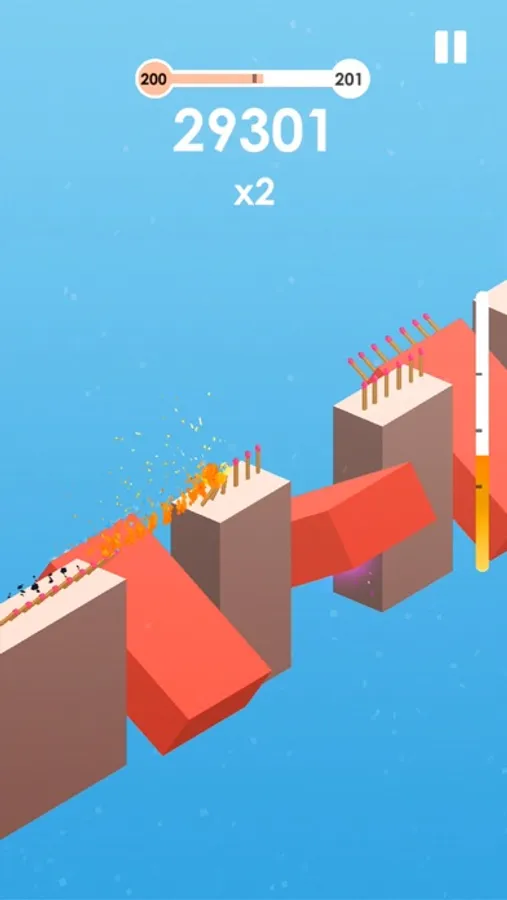 make the fire goes to the end and enjoy the toppling of perfectly lined matches and fire up domino.