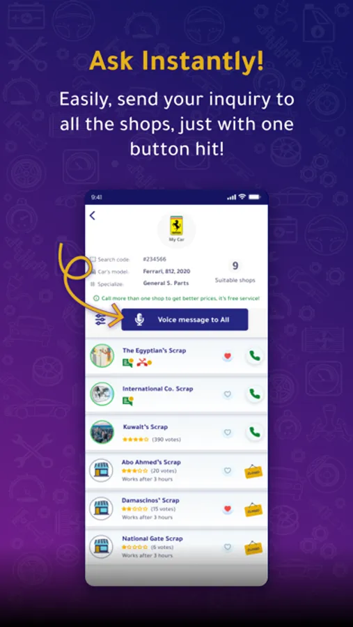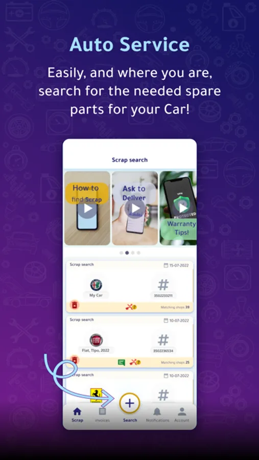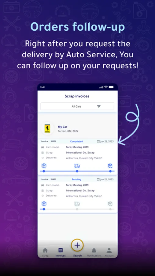 The application displays all used car parts available in the Scrap in Kuwait and UAE, and delivered them to the desired address whether it is a home or a repair garage.