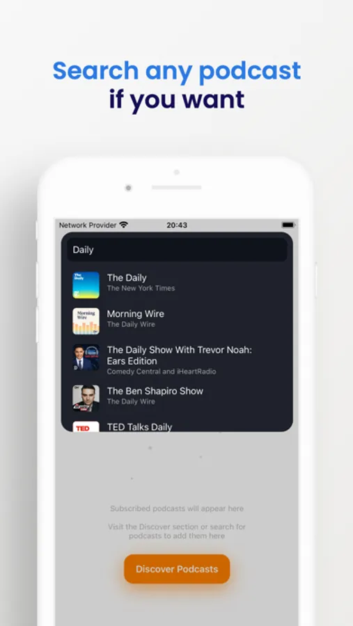 • Find other your favorite podcasts with integrating iTunes searching feature.