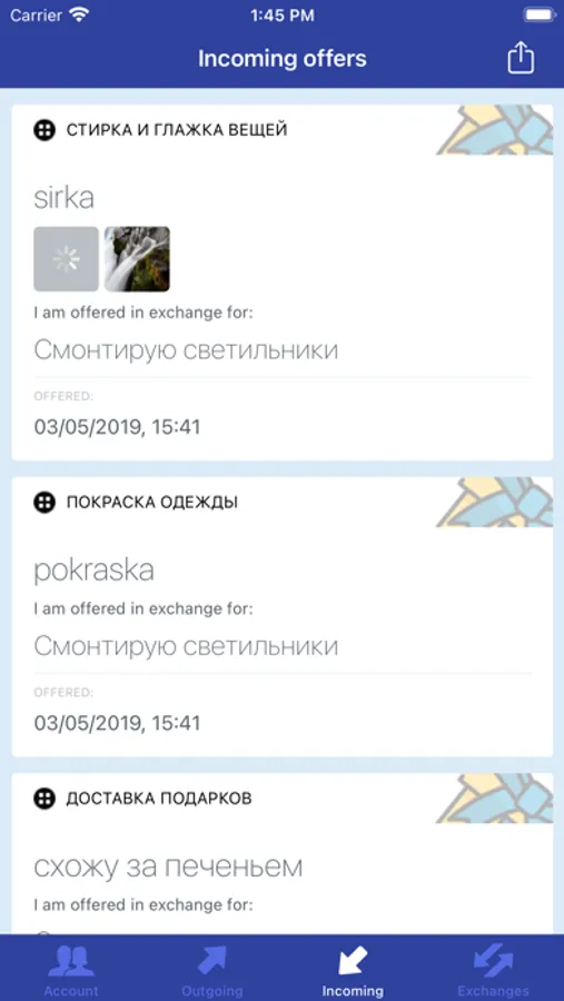 Quid pro Quo (lat. Something for something) - new mobile service to offer and search for performers of any services or customers and exchange them!