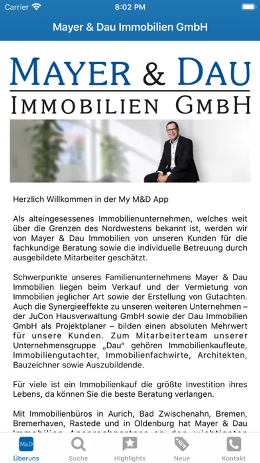 Von der Mietwohnung, dem Gewerbeobjekt bis hin zum Einfamilienhaus – bei uns finden sie alle Objekte und das schnell und übersichtlich. Durch eine Auswahl von Highlights und neuen Objekte aus unserem Portfolio in einem gesonderten Bereich verpassen Sie keine Immobilie mehr und können bequem aus der App heraus einen Besichtigungstermin vereinbaren.