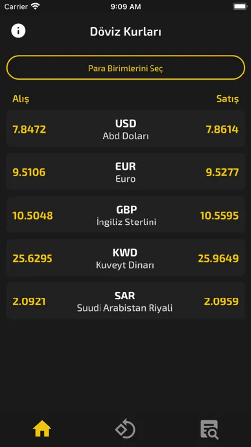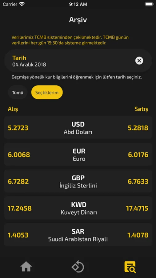 - Takip etmek istediğiniz kurların günlük alış ve satış değerlerini