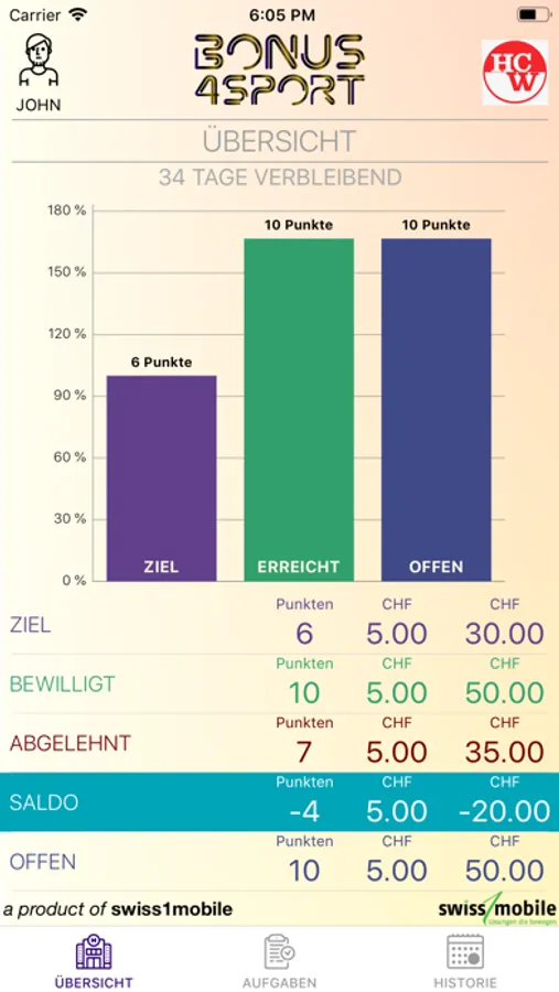 Mit unserer Lösung wollen wir Ihnen die Möglichkeit bieten Leistungen für die verschiedenen Mitgliedergruppen/-stufen zentral zu erfassen/verwalten. Ihren Mitgliedern wird innerhalb unserer APP die Möglichkeit geboten laufend mehr über den aktuellen Stand Ihres Bonus/Malus Konto zu erfahren, aber auch Leistungen abzuarbeiten oder mit Kommentar abzulehnen. Damit auch eine grundsätzliche Prüfung gegeben ist, haben wir eine clevere Authorisierung durch die Verantwortlichen eingebaut, damit die Fleissigen schnell und unkompliziert belohnt werden können.
