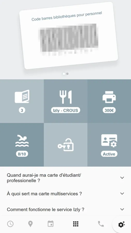 - Pour les étudiants et employés de l'UGA (Université Grenoble Alpes), Grenoble INP, IEP (Science Po Grenoble), Collège Doctoral de Grenoble, l'ENSAG (Ecole Nationale Supérieure d'Architecture de Grenoble), détenteurs de la carte multiservices : un complément d'informations à la restauration, aux bibliothèques (emprunts, affluences), contrôle d'accès, un suivi des entrées piscine, du quota d'impressions...