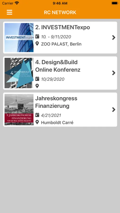 Nutzen Sie die vielen Informationen und Vorteile für ihren nächsten Veranstaltungsbesuch. Mit der RC NETWORK App werden Sie mit allen wichtigen Informationen rund um Ihre Veranstaltung versorgt. Sie sind jederzeit nur wenige Klicks vom nächsten Event-Highlight in der Immobilienbranche entfernt.