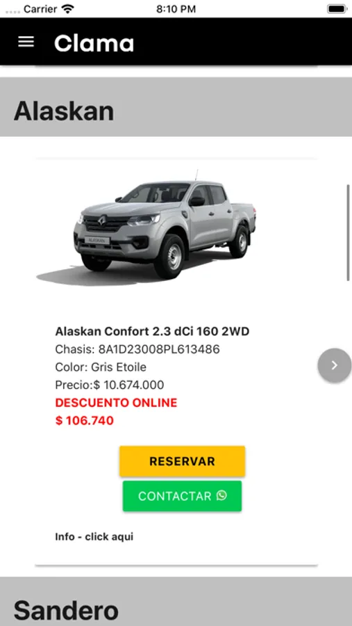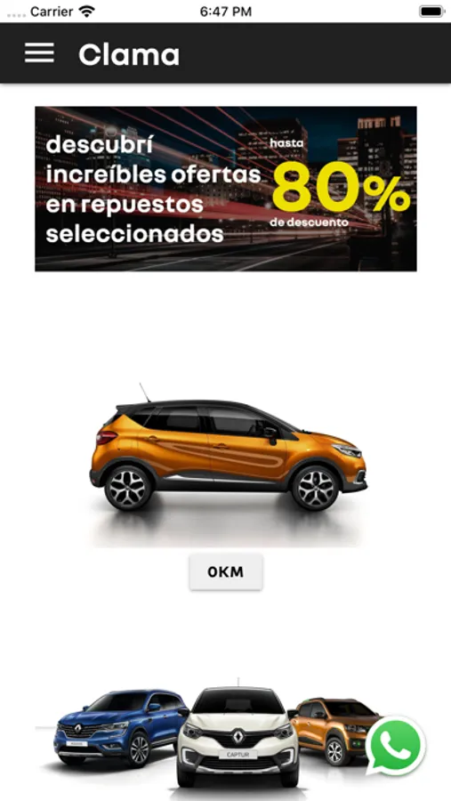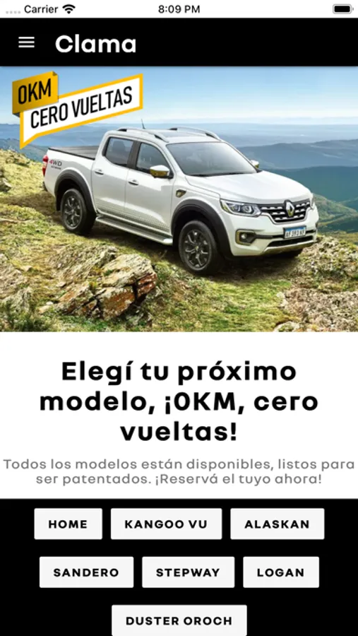 Bienvenido a Clama, desde nuestra app te invitamos a descubrir los vehículos nuevos y de ocasión que tenemos disponibles para vos, como así también nuestros excelentes servicios de post-venta y sucursales en Capital Federal.