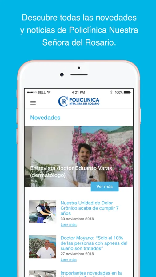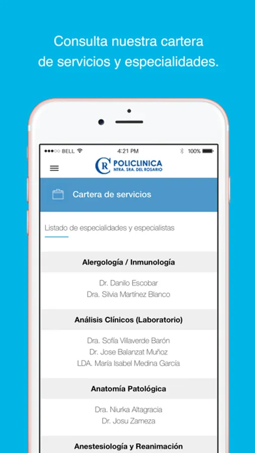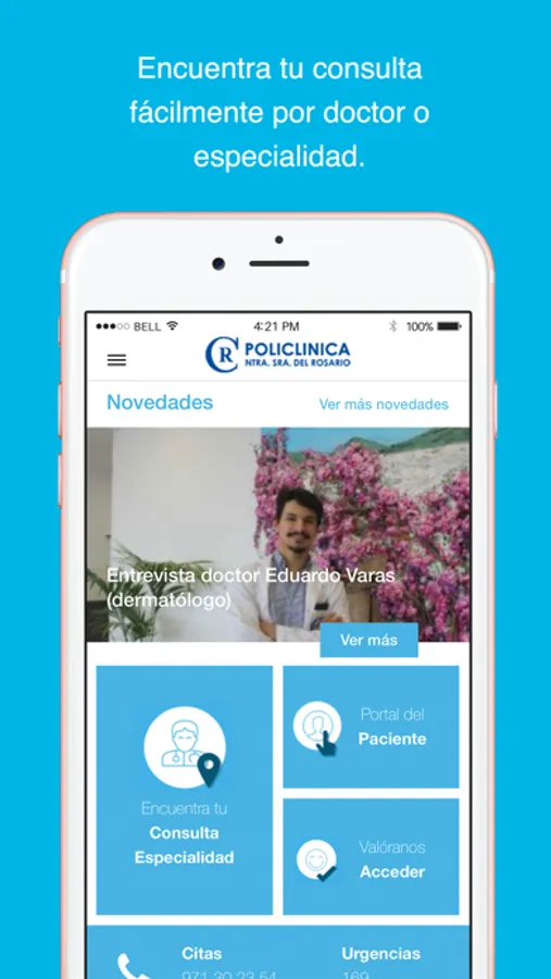 Grupo Policlínica es la aplicación móvil de la Policlínica Nuestra Señora del Rosario que permite a los pacientes conocer información sobre nuestros servicios, localizar las consultas y centros, médicos, teléfonos de atención al cliente, noticias o acceder de forma privada al portal del paciente donde podrás consultar tus citas, pruebas realizadas e informes.