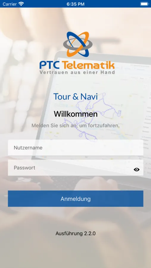 Die App Tour & Navi ist nur zusammen mit dem Tourenplaner der PTC Telematik nutzbar.