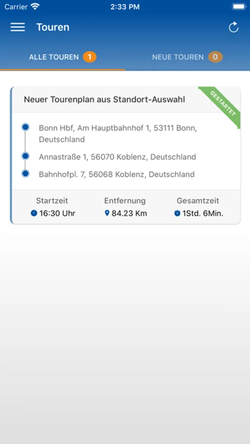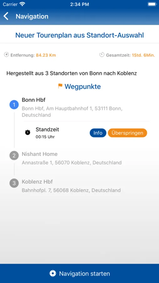 * Sofortige Navigation der geplanten Tour
