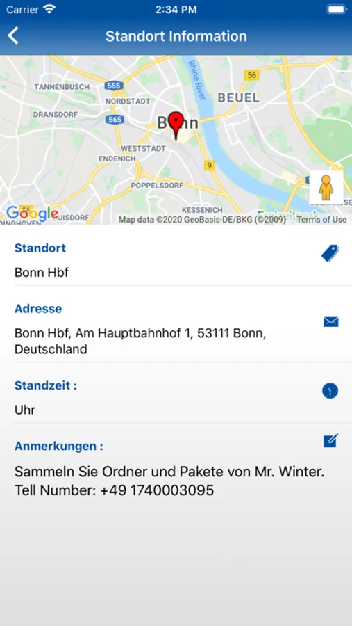 * Hinterlegte Standortinformationen