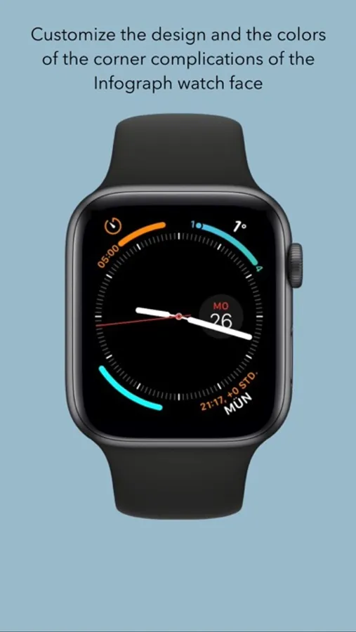 Apple Watch Series SE/4/5/6 provide the powerful Infograph watch face with lots of possibilities to customize the functionality. Customizing the design however is limited to choosing the color. Bezels provides a way for customizing the design of the Infograph watch face. You can choose from a variety of patterns and colors for the circular complication to create a new look&feel of the Infograph watch face.