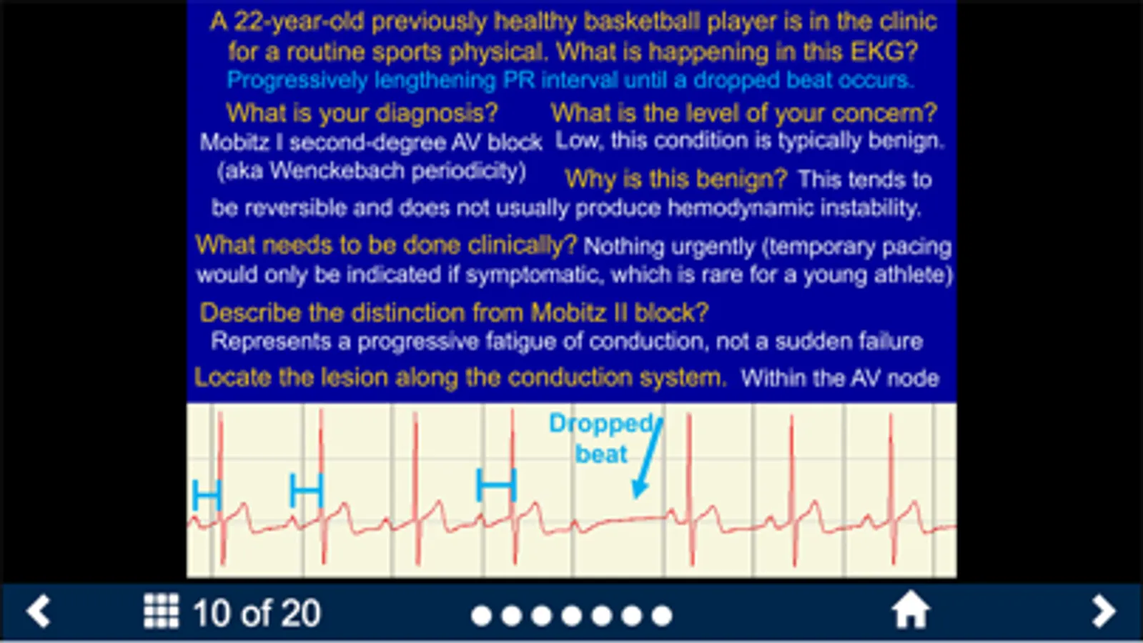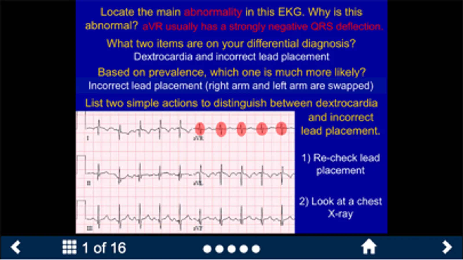 The complete EKG - SecondLook™ mobile app is a study aid for learners of the medical sciences to self-test their level of knowledge about this important diagnostic test, which is a standard tool in cardiac medicine. The complete app covers the basics of EKGs and their diagnostic value in the context of various cardiac pathologies, including arrhythmias, hypertrophies, infarctions, conductance aberrations and others. Specific diagnoses and applications are reviewed in a stepwise fashion including potential concerns and limitations.